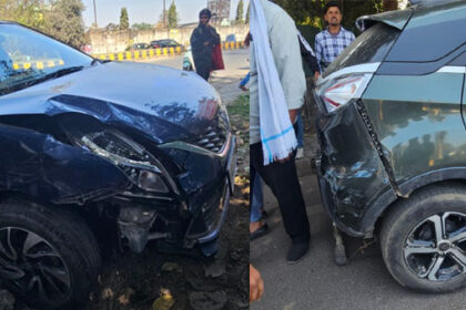 साकची में टली बड़ी दुर्घटना, महाराणा प्रताप चौक के पास खड़ी नेक्सन से भिड़ी बलेनो