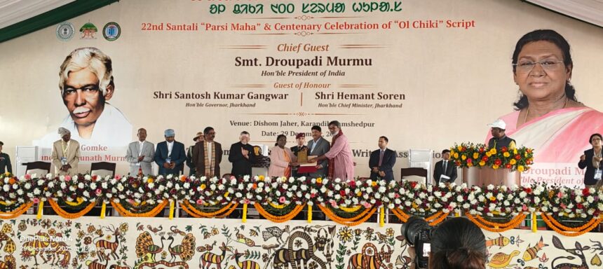 जमशेदपुर : टाटा स्टील फाउंडेशन को देश के विभिन्न राज्यों में ओल चिकी लिपि और संताली भाषा के संरक्षण, संवर्धन और विकास में उसके सतत एवं प्रभावशाली योगदान के लिए माननीय राष्ट्रपति श्रीमती द्रौपदी मुर्मु द्वारा सम्मानित किया गया।