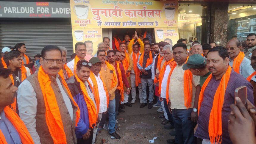 आदित्यपुर नगर निगम चुनाव: दुर्गा पूजा मैदान के पास खुला भाजपा मेयर प्रत्याशी संजय सरदार का चुनाव कार्यालय