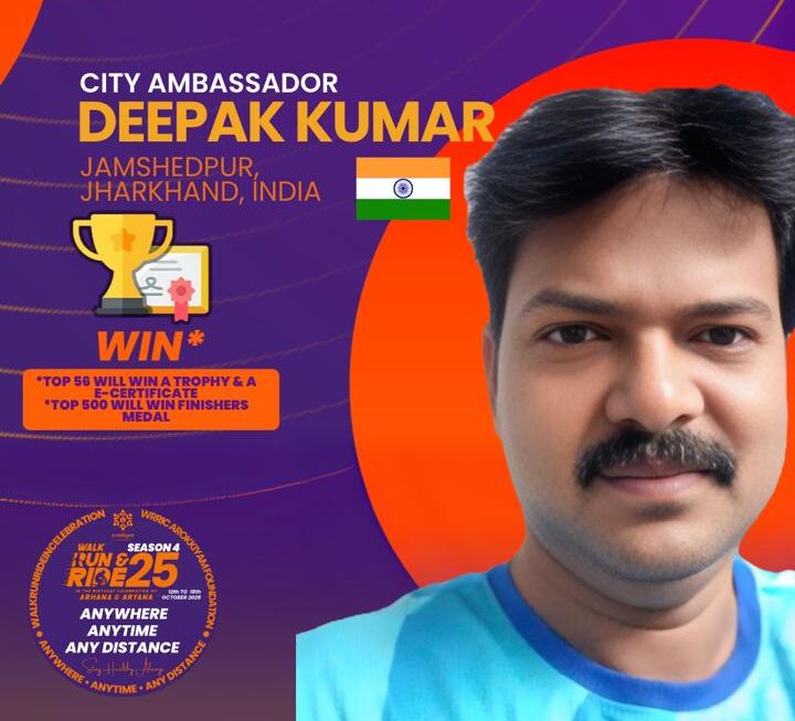 जमशेदपुर: शहर के युवा फिटनेस उत्साही और धावक दीपक कुमार को अंतरराष्ट्रीय संस्था WRRIC AROKKIYAM FOUNDATION ने ‘चेंज मेकर’ (Change Maker) के रूप में आमंत्रित किया है। यह उपलब्धि न केवल उनकी व्यक्तिगत पहचान है, बल्कि जमशेदपुर के लिए भी गर्व का क्षण है।
