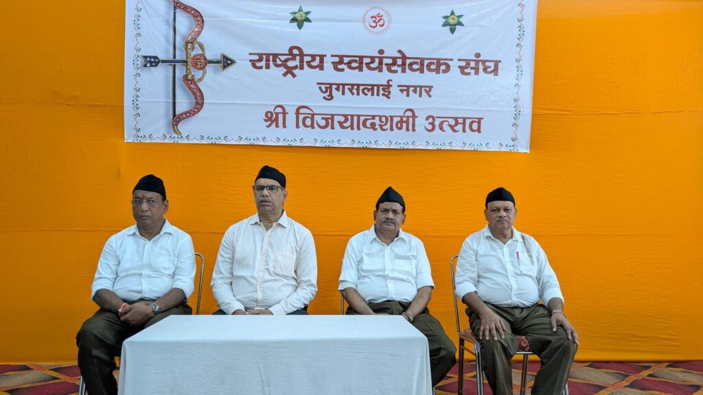 जमशेदपुर (जुगसलाई), 28 सितंबर: राष्ट्रीय स्वयंसेवक संघ, जुगसलाई नगर द्वारा संघ के शताब्दी वर्ष के उपलक्ष्य में विजयादशमी उत्सव एवं पथ संचलन का आयोजन किया गया, जो एम.ई. स्कूल रोड स्थित राजस्थान शिव मंदिर से प्रारंभ होकर नगर भ्रमण करते हुए सम्पन्न हुआ। कार्यक्रम का विधिवत शुभारंभ भारत माता के चित्र पर पुष्प अर्चन एवं शस्त्र पूजन के साथ किया गया।
