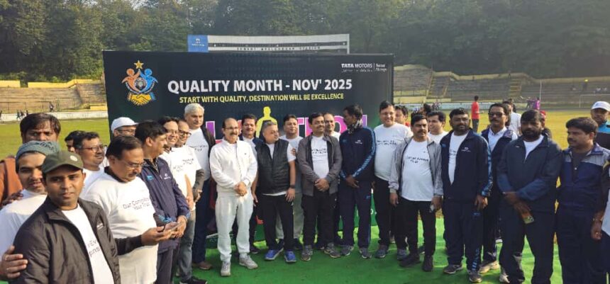जमशेदपुर : टेल्को स्थित सुमंत मूलगांवकर स्टेडियम में रविवार सुबह 5:30 बजे टाटा मोटर्स द्वारा 5 किलोमीटर वॉकथॉन का आयोजन किया गया। कार्यक्रम का नेतृत्व क्वालिटी हेड प्रमोद भुरे ने किया। यह आयोजन Q.A. टाटा मोटर्स कमर्शियल व्हीकल्स लिमिटेड, जमशेदपुर द्वारा गुणवत्ता माह के तहत “थिंक डिफरेंटली” थीम पर आधारित था, जिसका उद्देश्य नवाचार, सामुदायिक स्वास्थ्य और सामूहिक उत्तरदायित्व को बढ़ावा देना था।