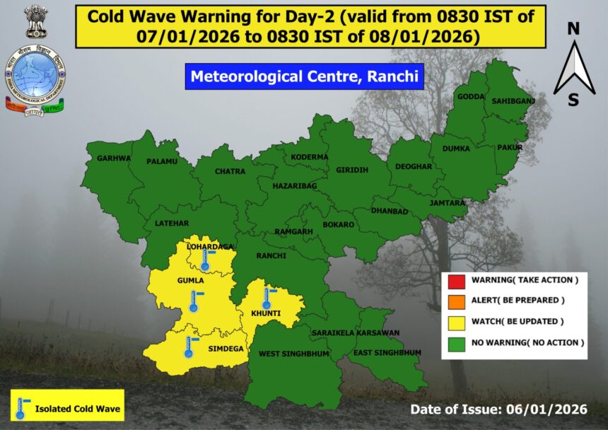 बोकारो थर्मल, लोहरदगा, खूंटी, चाईबासा और गुमला सहित कई जिलों में भी न्यूनतम तापमान 2 से 6 डिग्री सेल्सियस के बीच दर्ज किया गया। खासकर खूंटी में न्यूनतम तापमान 2.1 डिग्री सेल्सियस तक पहुंच गया, जो राज्य में सबसे कम रहा। मौसम विभाग के अनुसार रांची (कांके), खूंटी, लोहरदगा, डालटनगंज, बोकारो थर्मल और चाईबासा में गंभीर शीतलहर की स्थिति दर्ज की गई है।